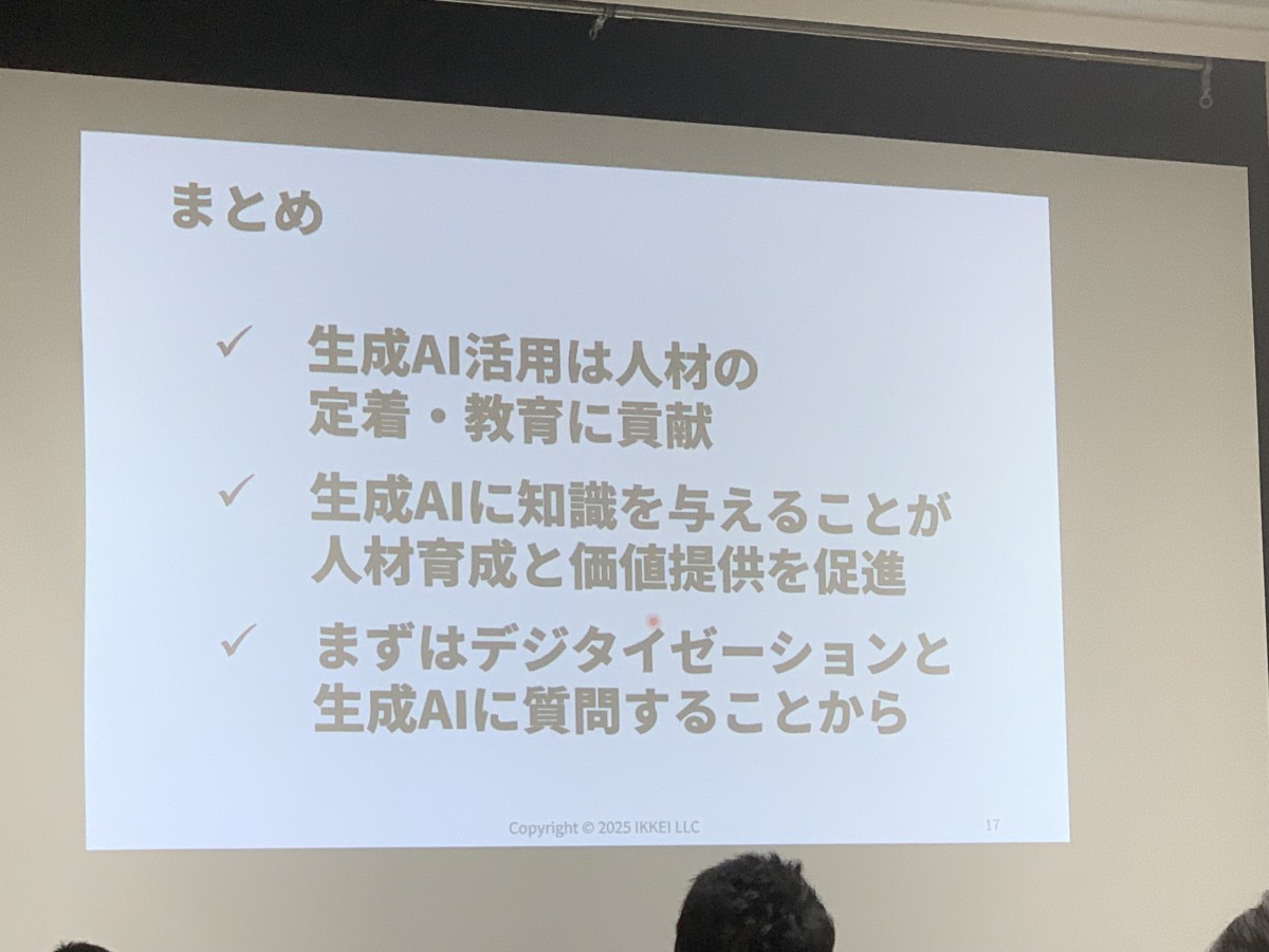 中野診断士からは生成AIのデモンストレーションを行っていただき、今後生成AIを活用して行くための取り組み方をお話しいただきました。